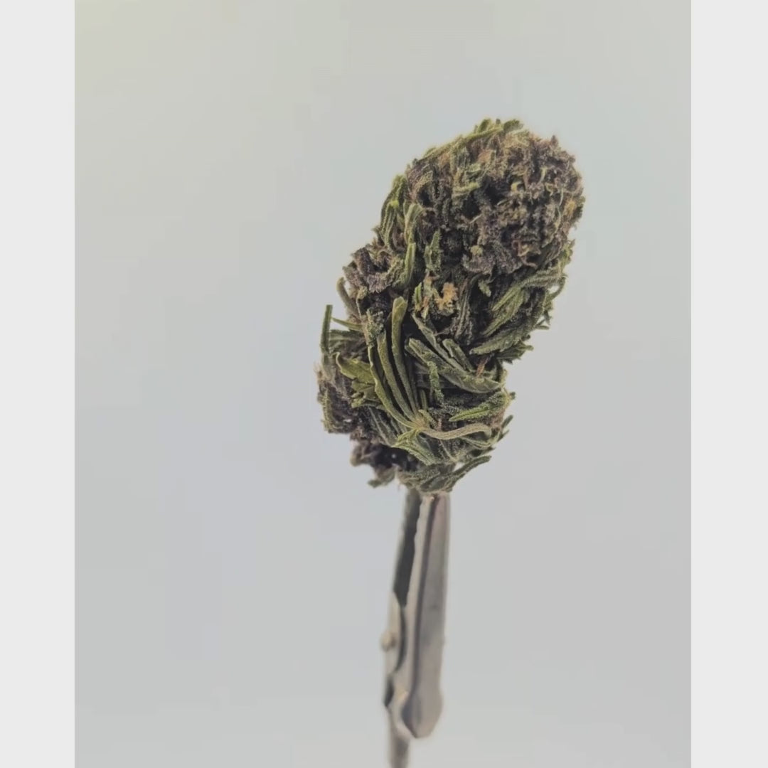 El Purple Haze CBD seduce a primera vista con sus tonos intensos de verde a púrpura oscuro. Sus flores compactas y ligeramente pegajosas son el resultado de un cuidadoso cultivo en invernadero. Algunas de las hojas se han conservado deliberadamente, resaltando el cuidado artesanal que se ha puesto en la manicura.
